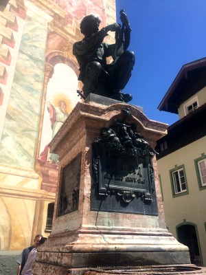 教会の前には、この町にヴァイオリンをもたらしたマティアス・クロッツの像。